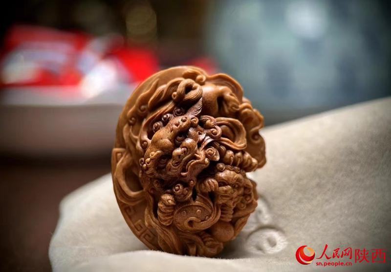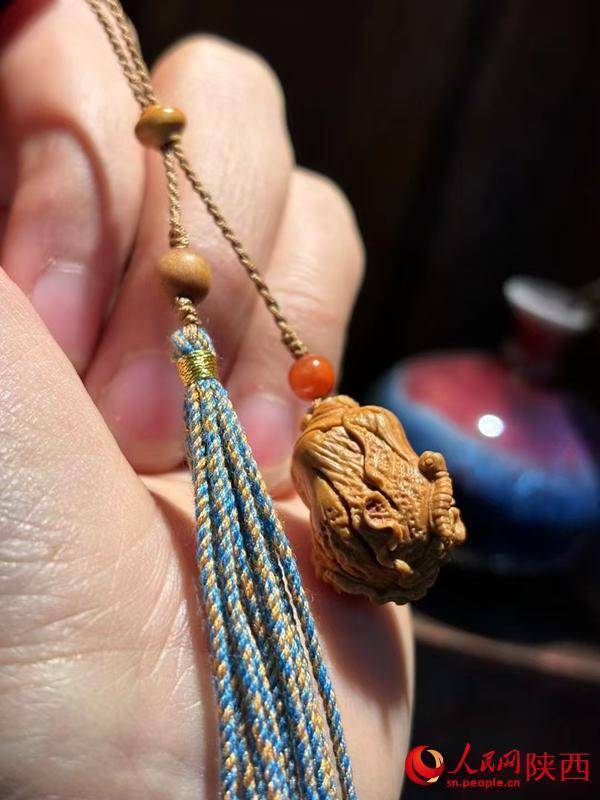 今年44岁的王小彬是西安市碑林区非物质文化遗产核雕技艺代表性传承人。10月7日当天,已是“双节”假期尾声,王小彬的店里依旧挤满了人。桃核雕的“悟空脸”、枣核雕的“饺子”、橄榄核雕的“小茶壶”......形态各异、惟妙惟肖的果核雕件陈列有序,游客们正在挑选着心仪的核雕作品。